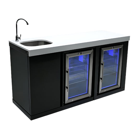 Mont Alpi Black Outdoor Entertainment and Prep Centre with Sink and Duel Beverage Fridges