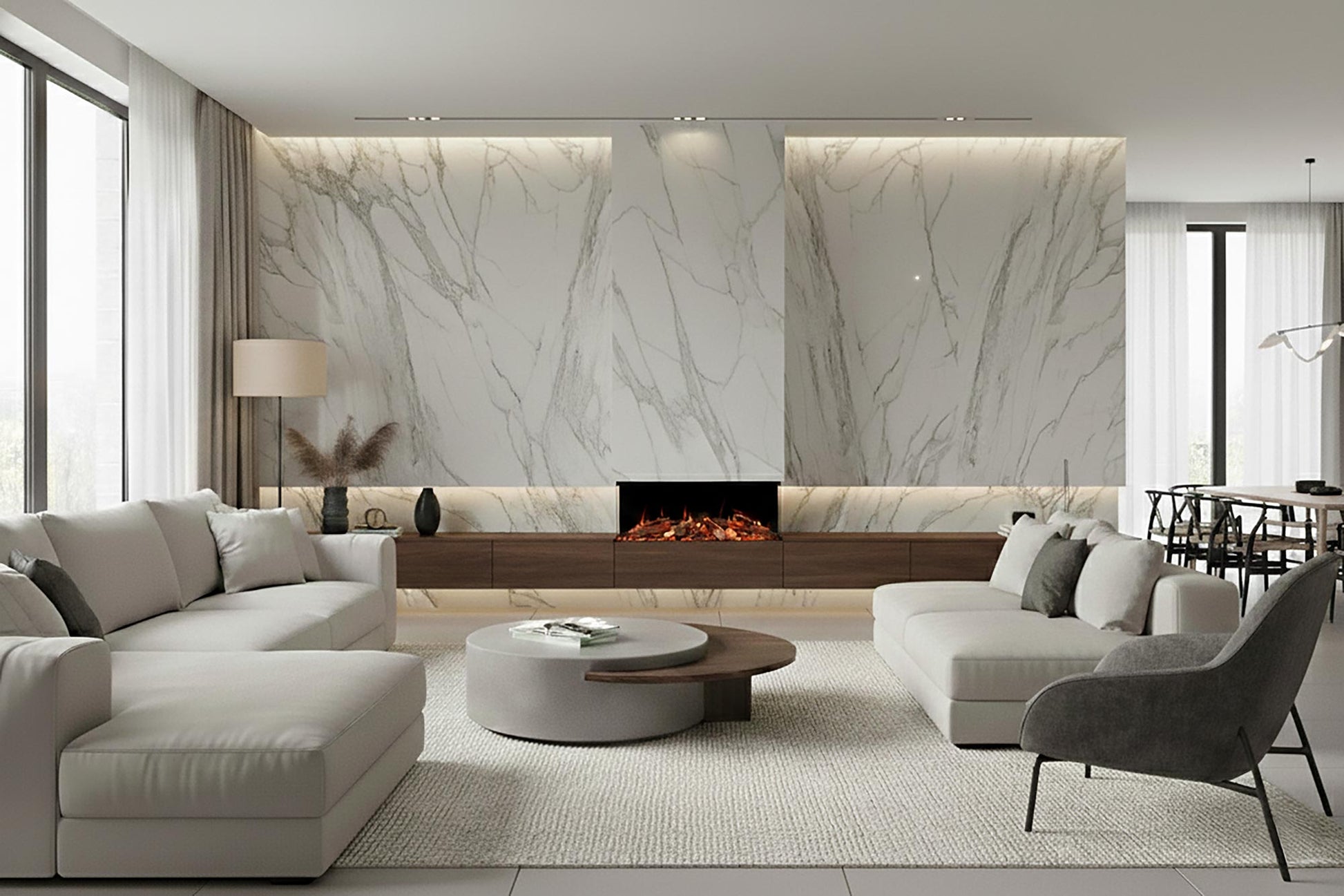 - Modern, architectural aesthetic that transforms any space into a warm gathering place