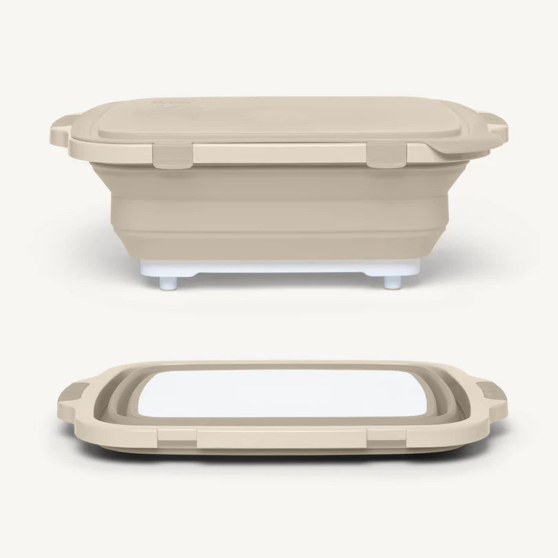 PREP, SERVE, & STORE WITHOUT THE CHAOS: Our versatile prep tub is perfect for effortless meal preparation, serving, and storage, featuring a built-in cutting board and secure lids to keep your ingredients fresh and your kitchen tidy. COMPACT & COLLAPSIBLE: Save space with our prep tub that collapses for easy storage in any kitchen or outdoor setting. Convenient handles make it simple to carry from kitchen to grill, picnics, or camping trips. STURDY & DEPENDABLE: Crafted from high-quality materials, this tub is designed to withstand both indoor and outdoor use. The non-slip base provides stability while you prepare your meals with ease. EFFORTLESS CLEANING: Made for hassle-free cleanup, our prep tub can be hand-washed or thrown in the dishwasher, giving you more time to savor your meals and less time scrubbing.