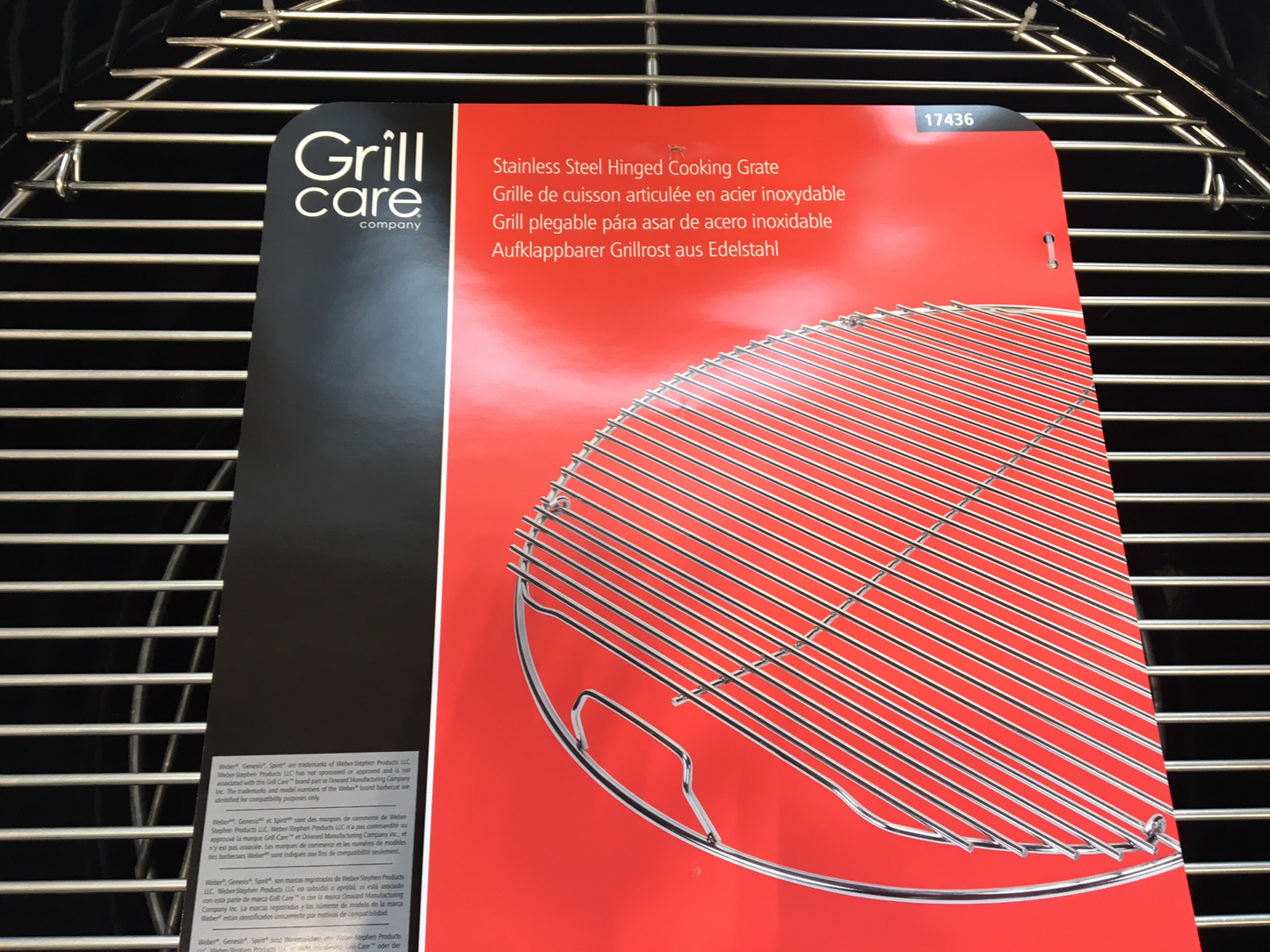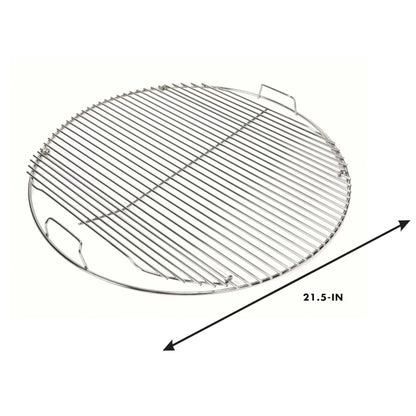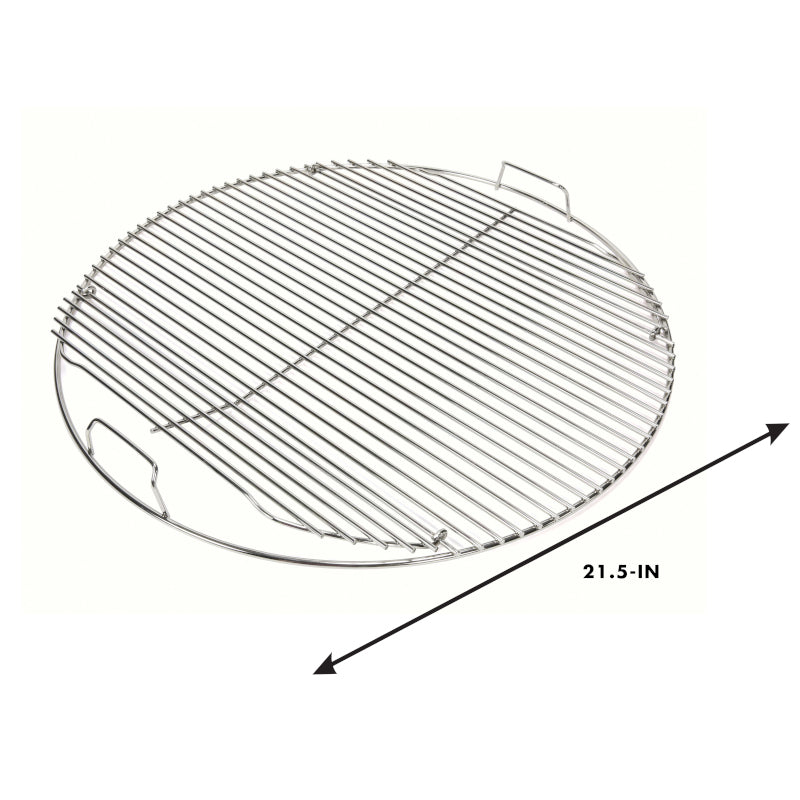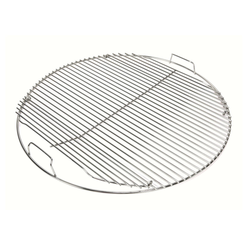 The Grill Care 22.5" round cooking grill fits most full sized kettle grills and is made of stainless steel to ensure that it will be a'round' for a very long time. Additionally, it features hinges on the sides so that you can access your charcoal grate. This can be handy for adding more coal, or more smoking wood.