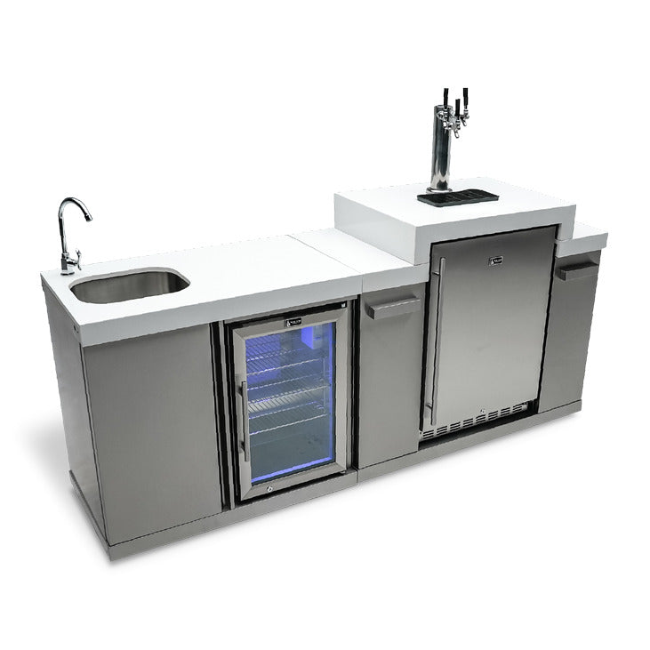 The Mont Alpi Beverage Center and Kegerator is a high-quality beverage dispenser designed for both indoor and outdoor use. This versatile unit is perfect for keeping your favorite drinks cold and refreshing, from beer and soda to wine and other beverages. It features a spacious interior that can hold a variety of beverages, making it ideal for parties, events, and gatherings of all sizes.