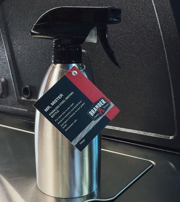 Get saucy with the Brander Mr. Mister spray bottle! Boost your grilling game by infusing your food with mouth-watering flavors and juices. Say goodbye to bland food and hello to deliciousness! Also, it's perfect for misting your cooking oil across your cooking surfaces.