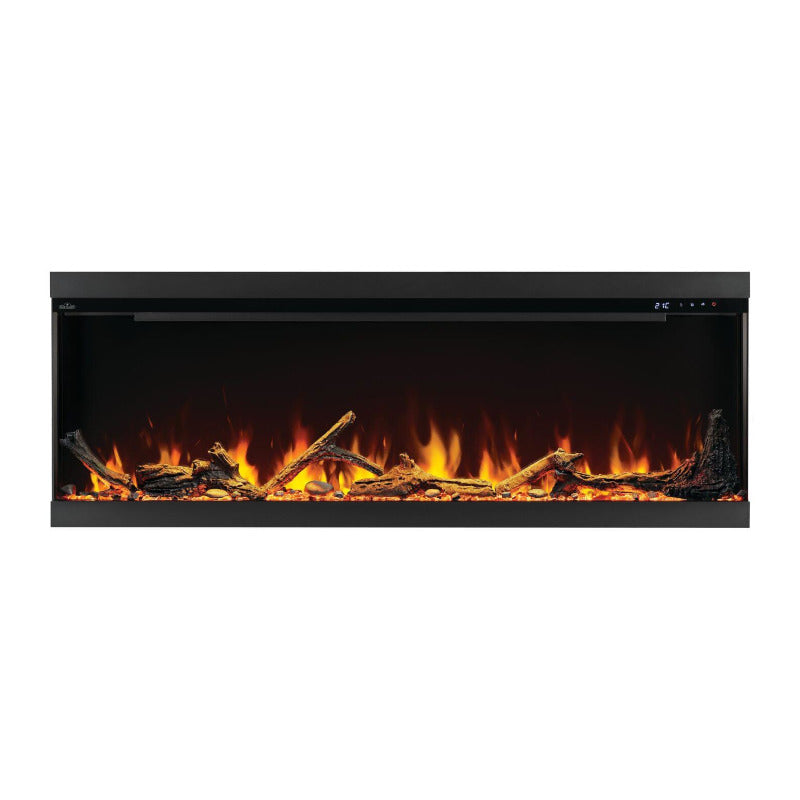 The Astound FlexMount Electric Fireplace is the ideal addition to comfortable and connected living. Our unique spark technology further enhances the flames for intense realism, while the inclusion of Beach Fire logs and Woodland media customize the unit to match your personal tastes. Use the touch panel, included remote, voice, and mobile device control with the Napoleon Home App for unmatched mastery over your fireplace experience. Eco mode consumes less energy, while Boost mode adds an extra hit of heat on those chilly days. Customize your heat and color settings for each day of the week by setting a schedule. Thirteen ember bed and top light colors allow you to set the mood while optional and included glass and log sets ensure this fireplace matches your aesthetic. Not just a pretty fireplace, with its supremely flexible installation options and easy maintenance, the Astound can personalize any room or commercial space.