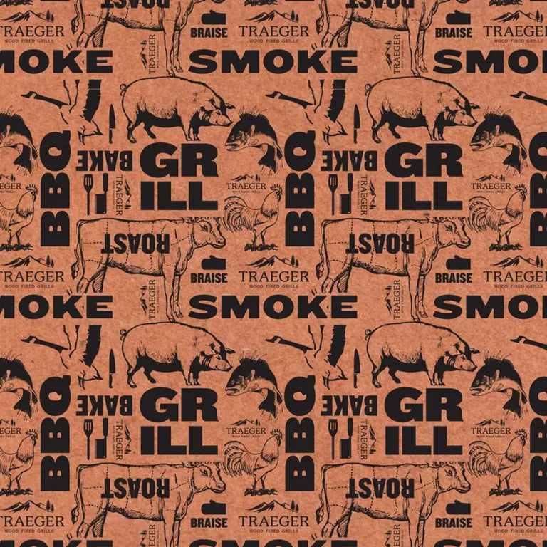 Cover a brisket, line your BBQ tray or table, or even wrap a gift for your fellow wood-fire friends with the Traeger Pink Butcher Paper. This FDA approved paper keeps your meat moist by sealing in the juices, but is breathable enough to protect that hard-earned bark and allow additional smoke flavor in.
