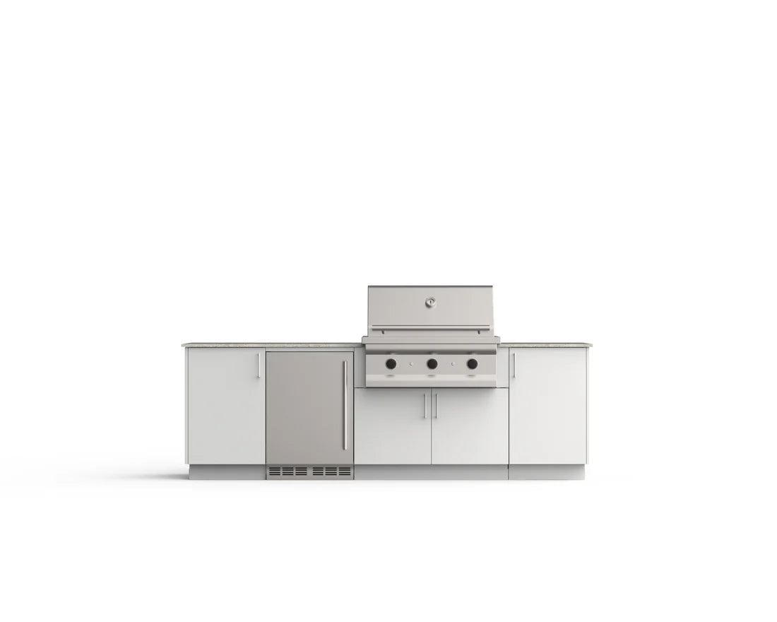 This outdoor kitchen powerhouse brings the fun to your backyard with room for a 36" grill, a built-in sink and faucet, plus clever storage spots to stash all your grilling gear. Say goodbye to messy countertops and hello to a space that's as easy to clean up as it is to cook in. Everything you need for legendary cookouts, all in one stylish setup.