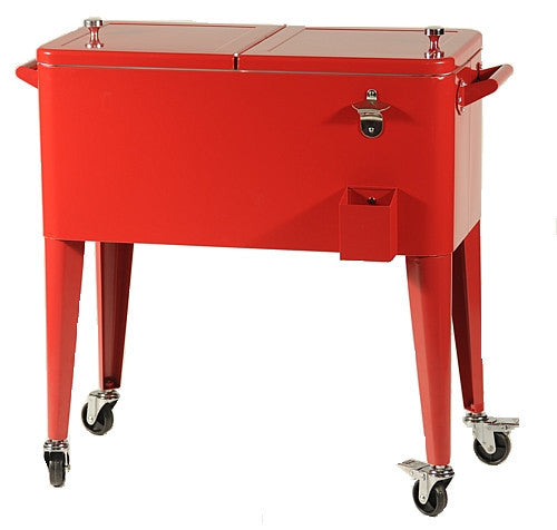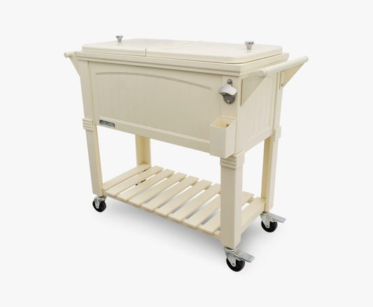 Brander Rustic Wood Grain Style Rolling Patio Cooler Grey 80Q